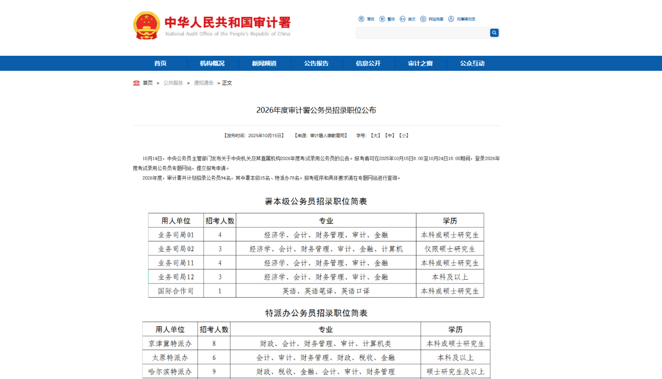 10月14日,中央公务员主管部门发布关于中央机关及其直属机构2026年度考试录用公务员的公告。报考者可在2025年10月15日8:00至10月24日18:00期间,登录2026年度考试录用公务员专题网站,提交报考申请。2026年度,审...