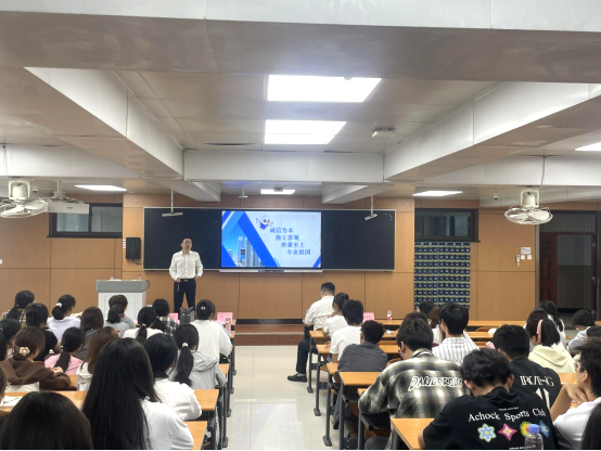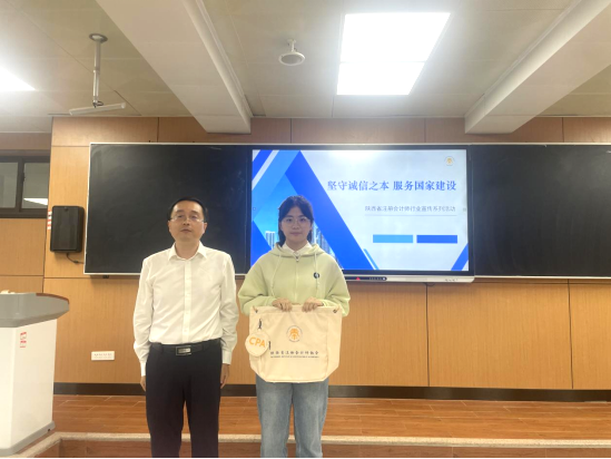许凯秘书长从行业党建、人才建设、诚信建设、事务所发展及信息化建设等方面,系统介绍全国及陕西省注册会计师行业的发展现状与趋势,强调行业在服务国家经济建设、维护市场经济秩序中的重要作用。他指出,学习注册会计师专业,既是掌握安身立命的专业本领,更是为未来以专业力量守护经济公平、助力社会发展奠基。本次讲座深度解读“诚信为本、独立客观、质量至上、专业报国”的内涵,将行业使命与职业素养教育深度融合,通过解读行业责任与价值,潜移默化传递坚守诚信、服务社会的思政理念,实现专业认知与价值引领同频共振。他鼓励学生夯实专业基础、坚守职业道德,积极投身行业发展。